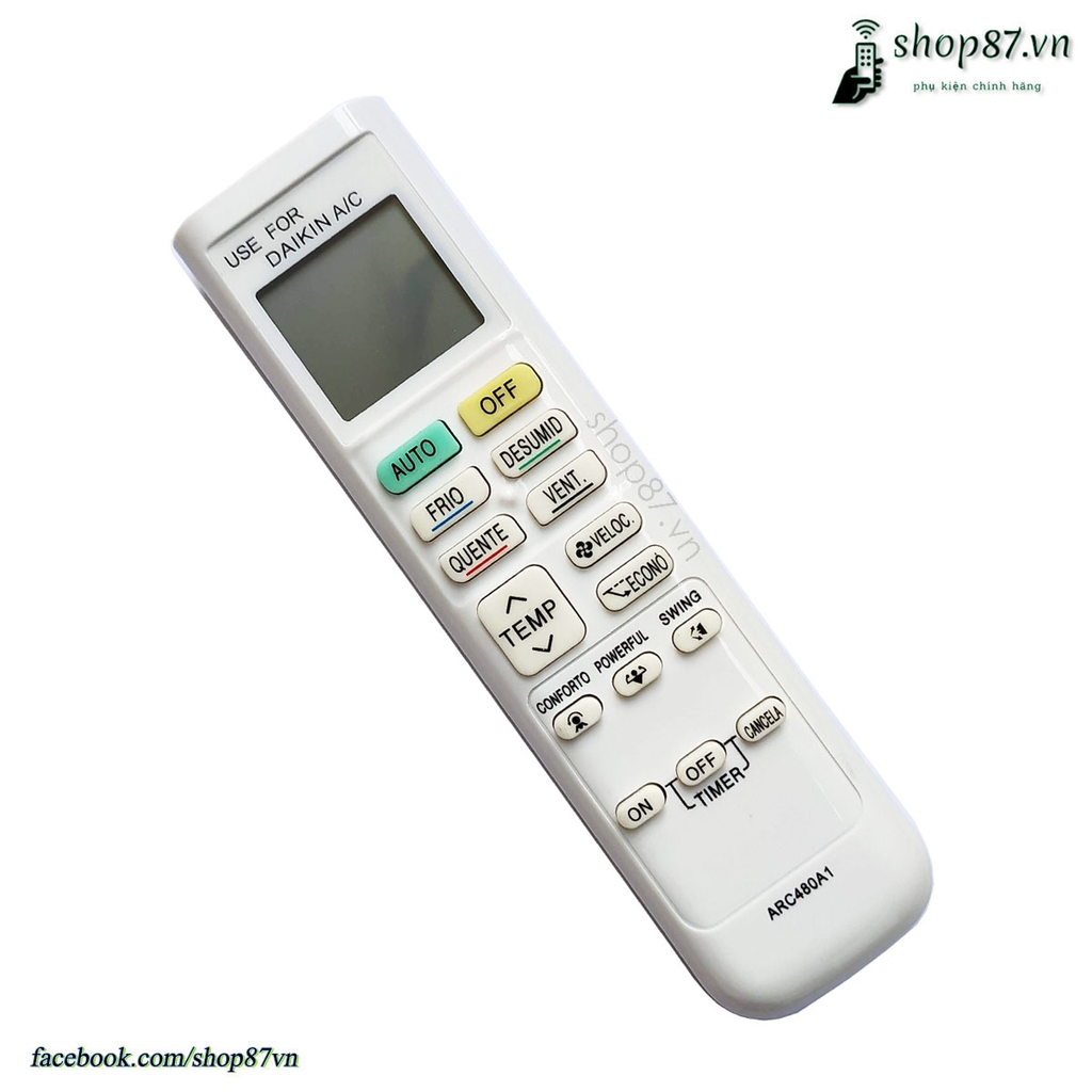 Điều khiển điều hòa Daikin ARC480A1 thay thế cho mã ARC480A21 ARC480A33 ARC480A32 ARC480A36 ARC480A47 ARC480A51 ARC480A19. Dùng cho cả máy lạnh 1 chiều và điều hòa 2 chiều của Daikin.